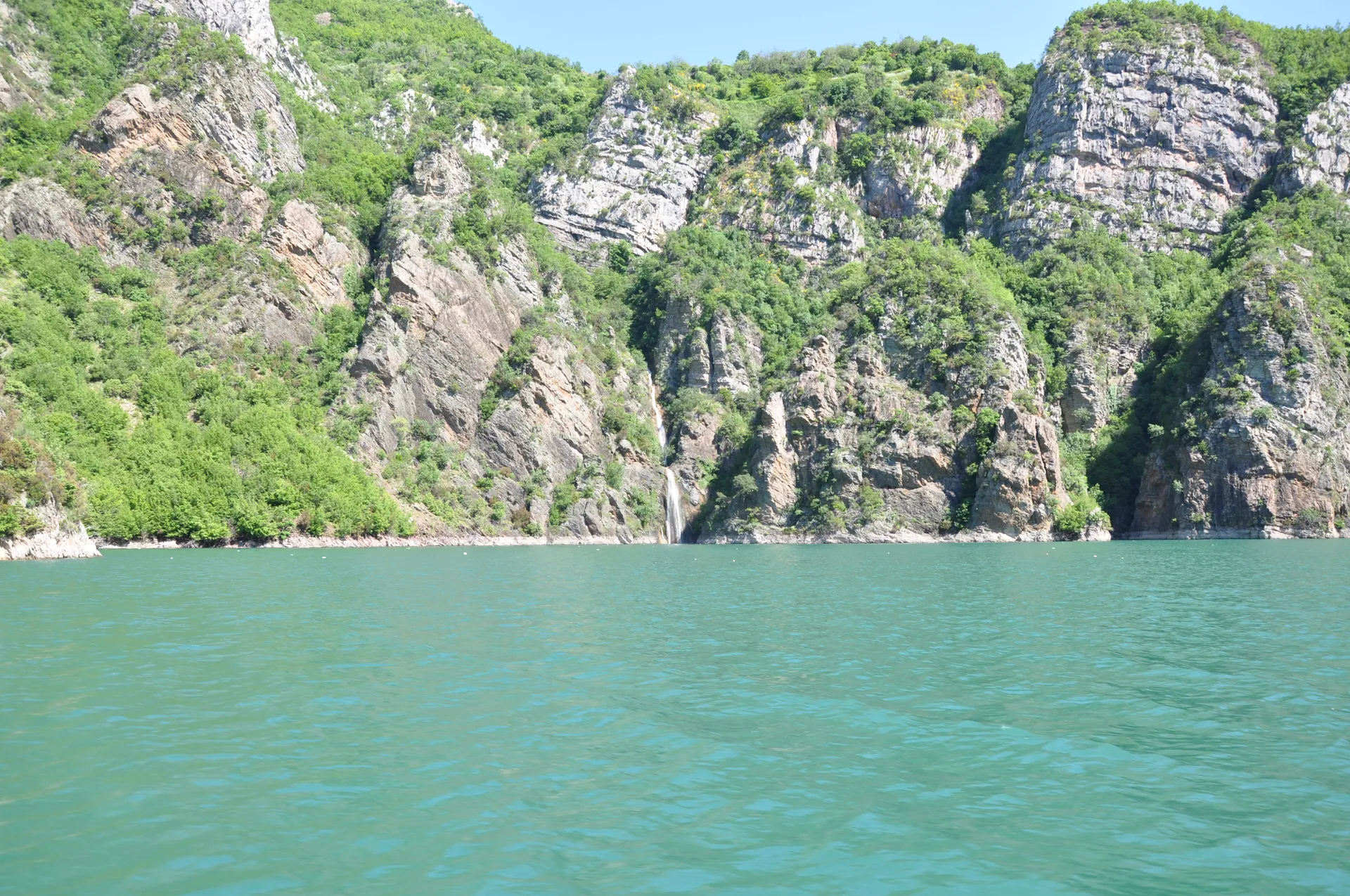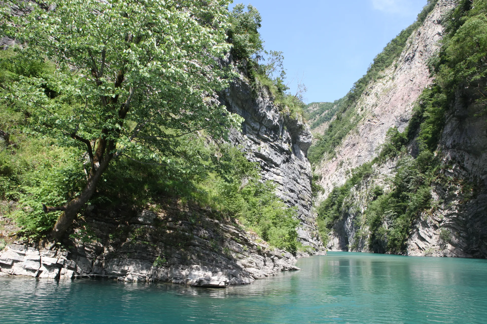 View from the boat speeding through the deep river canyons of northern Albania.